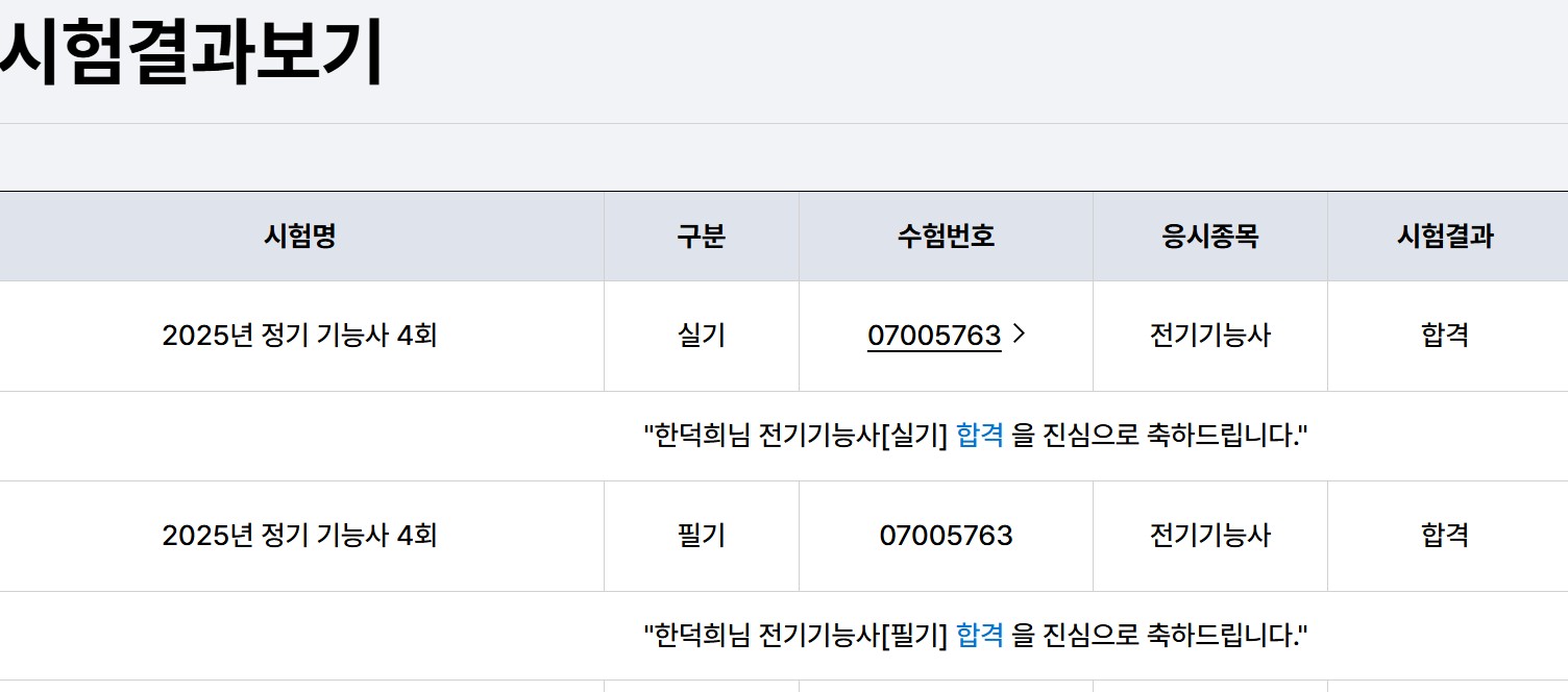 25년도 전기기능사 4차 실기에 한번에 넉넉하게 합격했습니다.