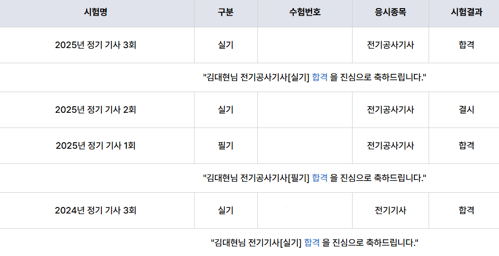 전기기사 필기로 시작하여 첫 합격, 2번의 실기시험으로 취득하고 바로 이어서