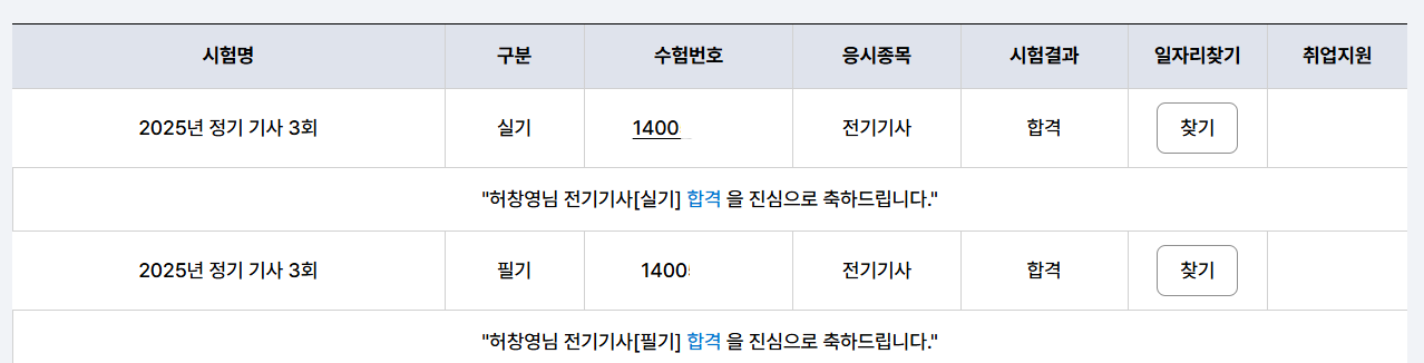 올해 1월에 시작하여 2025년을 마무리하는 12월에 합격 통보를 받고 전기기사 공부를 마무리합니다.