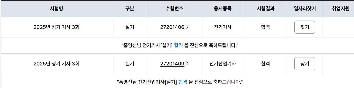 그런데 뜻하지 않게 떨어졌다고 생각한 전기산업기사도 합격했습니다.